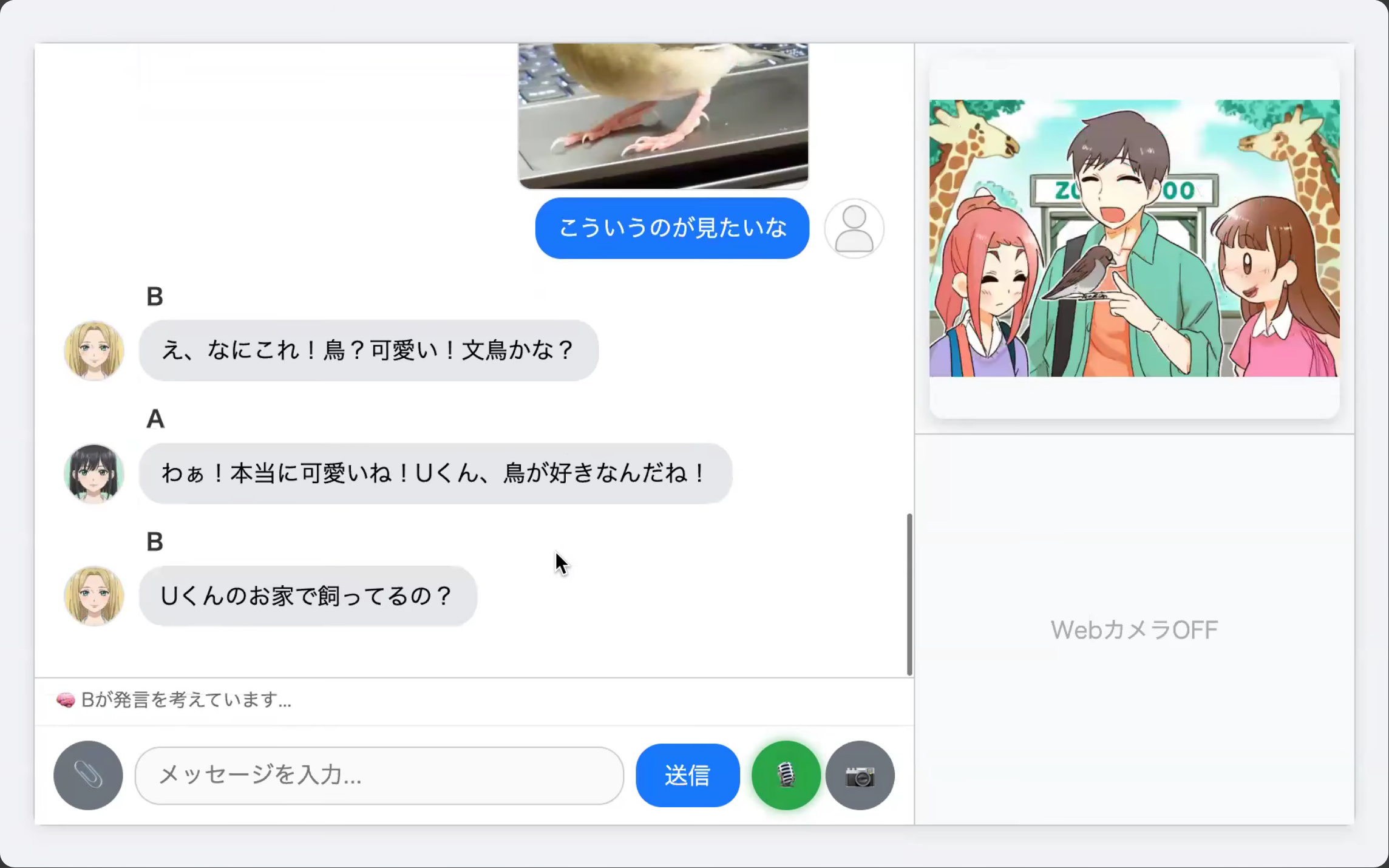 対話履歴から状況説明LLMの出力を画像出力モデルに入れてシーン生成